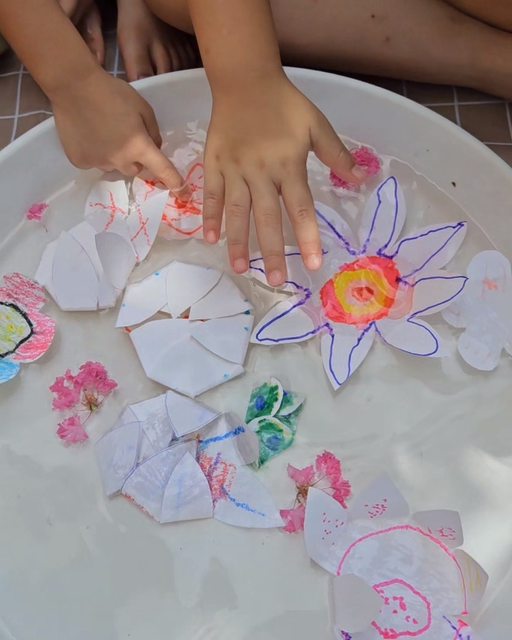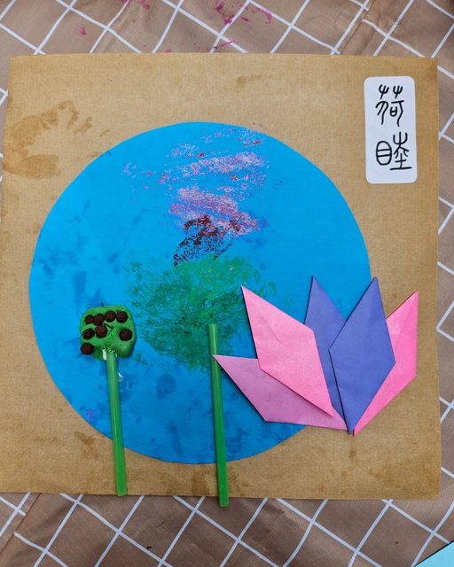 為了加深荷花是水生植物的印象,搭配毛細現象-紙花開的活動,孩子們一碰到水就停不