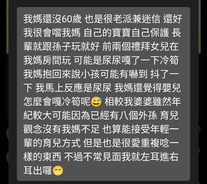 推 zitatsai : 面對育兒觀念不足又講不聽的長輩真的心累 07/16 15:54