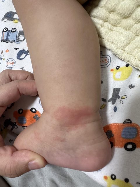 寶寶一歲1個月,全身都有小疹子,大腿內側跟腳踝最嚴重的紅腫疹(如照片)看起來有點像被蚊子咬但是爬文有感覺是蕁麻疹,請問有人知道這是什麼疹,要馬上給醫生看嗎?謝謝