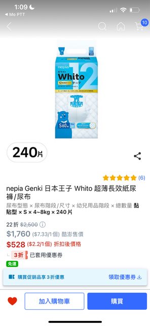 好康主旨:酷澎 日本王子尿布S三折補貨了