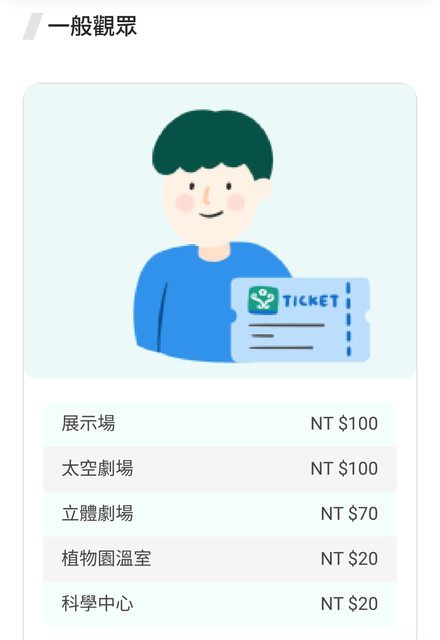 費用圖取自科博館官網,官網有詳細介紹費用表