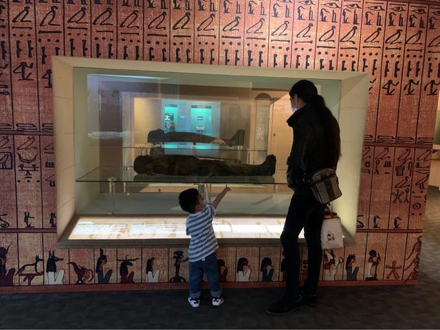 裡面必看的就是木乃伊,從2F這邊開始許多互動遊戲與介紹影片可以與寶貝細細探索。
