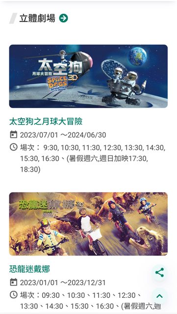 說明:目前展演的為動物王國(38分鐘)和遠古溶洞(41分鐘),需久坐適合2y以上願意