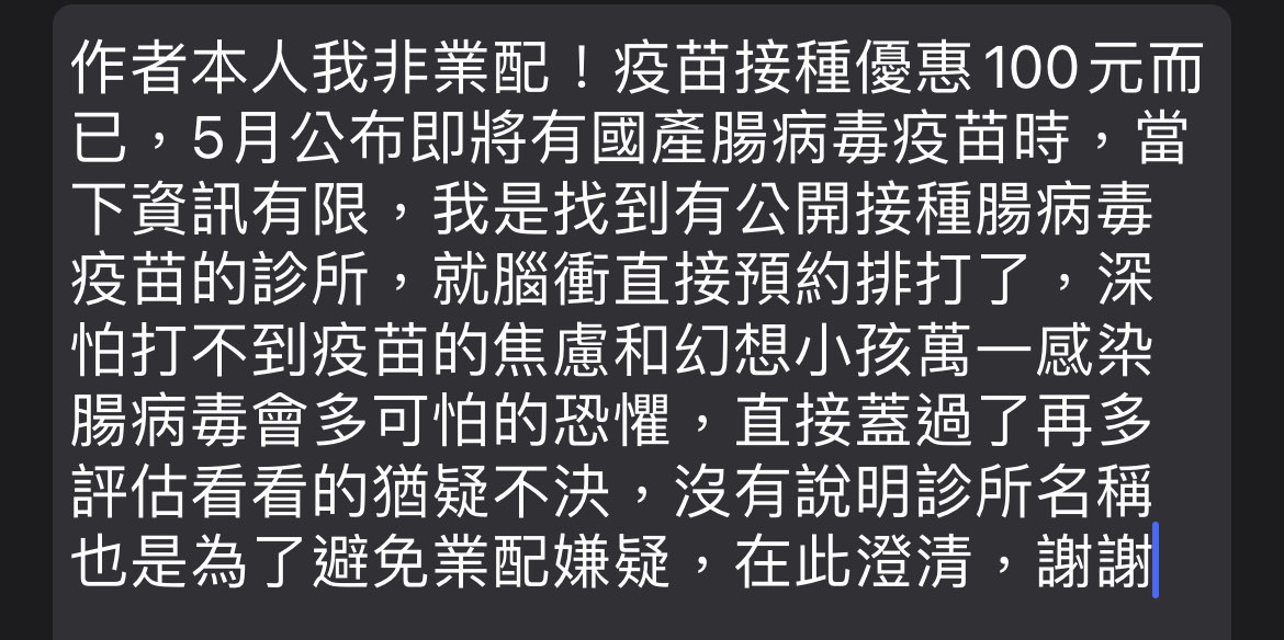 → Lily1019 : 診所不用付預約費,也沒有掛號費,只有疫苗自費4300 08/27 18:54