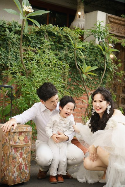 跟第一胎不同的是這次走溫馨家庭路線,第一胎的時候也是到台中拍攝,不過選擇的是「