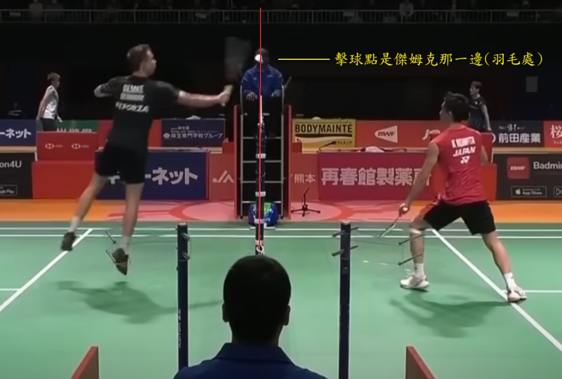 → moritsune : 羽毛已過網,所以他是打到羽毛,擊球點在他這邊吧 11/16 19:48