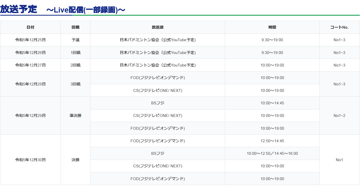 → shvzrrsy : 後面三天的比賽 日本バドミントン協会 不會開YT直播 12/26 19:17