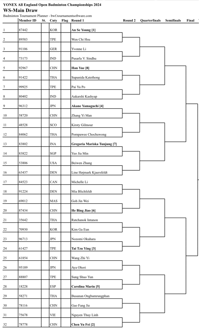 推 Miken : 小宋德國第二輪安妹 法國首輪戴姨 全英首輪馬皇02/20 19:30