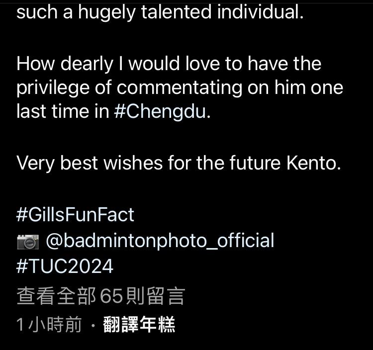 推 WTP821 : 曾經不喜歡看桃田的比賽,反正怎麼打都是他贏,未來 04/18 13:33