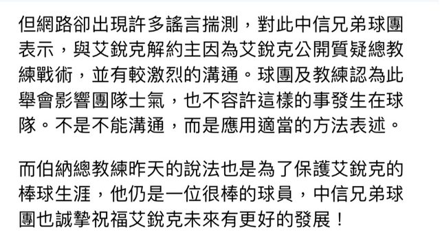 艾銳克打兩場就和教練團起衝突被解約