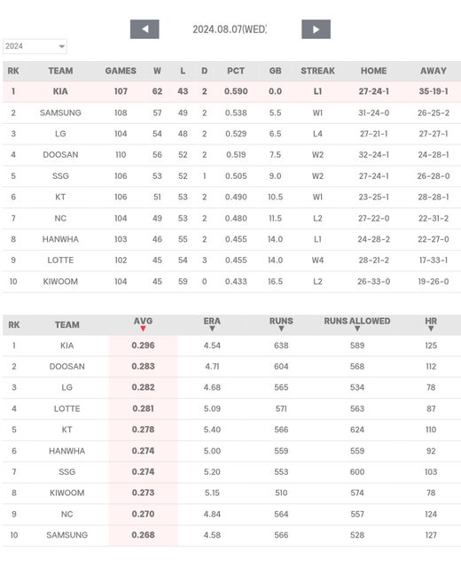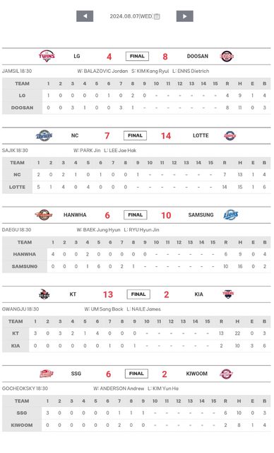 標題[數據] 韓職8/7結果(開季1個月7敗 嚴相伯奪10勝)