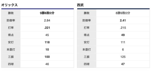 18回戦 歐力士9勝 西武8勝 大阪京瓷巨蛋 | 17:00 開賽