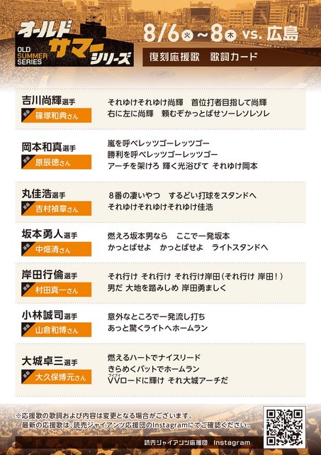 ・8月6~8日は「オールドサマーシリーズ」 後楽園球場時代の選手応援歌が復活