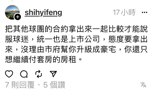 推 greatcat: 統一球團年營收獲利有沒有20%? 08/09 18:08