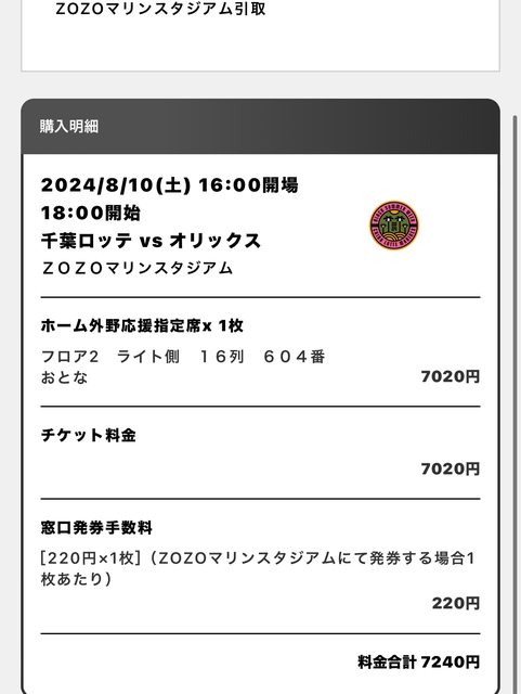 標題[贈送] 8/10千葉羅德主場應援席門票1張