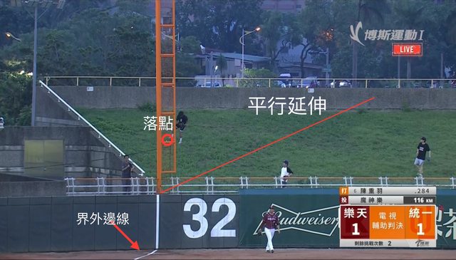 : 後面鏡頭有帶到實際的外野界外邊線位置