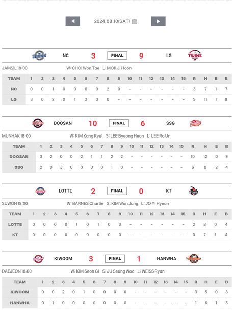 敗:Lee Ro-Woon(SSG)(2敗)—1局,2H,1BB,1