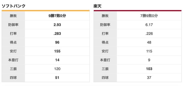 軟銀 9 勝,樂天 7 勝
