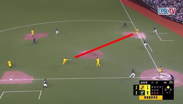 推 zllen: 一樣的3壘傳球位置,失手在1壘一半距離就砸到採線上跑壘員 08/11 14:30