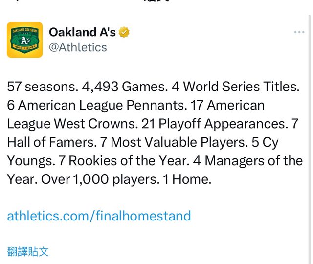 推 bowen5566: 79年運動家跟現在的狀況很像 老闆要賣球隊並且計劃搬 08/20 01:22