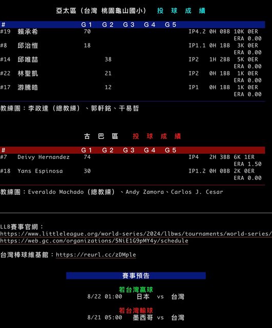 標題[LIVE] 威廉波特少棒 台灣 v 古巴