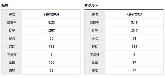 阪神 9 勝,養樂多 7 勝