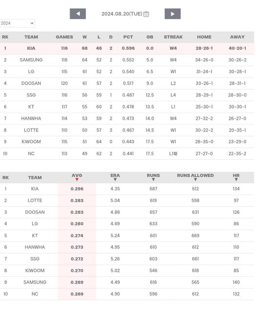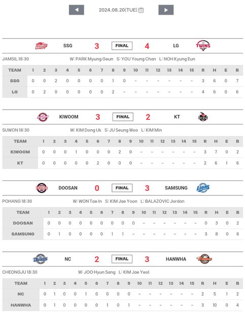 標題[數據] 韓職8/20結果(NC 11連敗墜底)