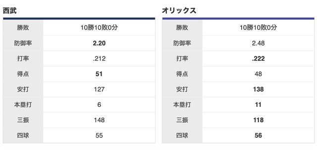 21回戦 歐力士10勝 西武10勝 西武Belluna巨蛋 | 17:00 開賽