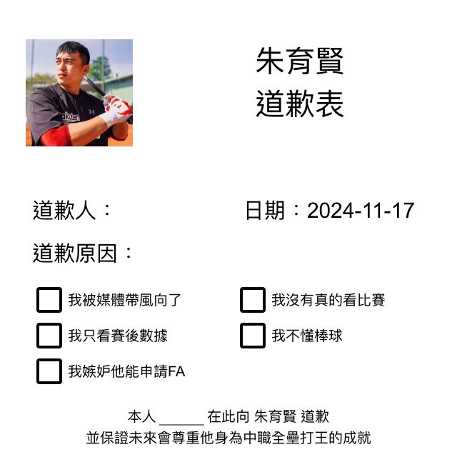 [分享] 朱育賢道歉表