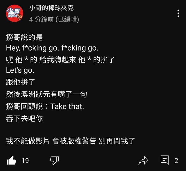 → james91718: 應該說是一些場上激動時會出口的話 11/19 14:28