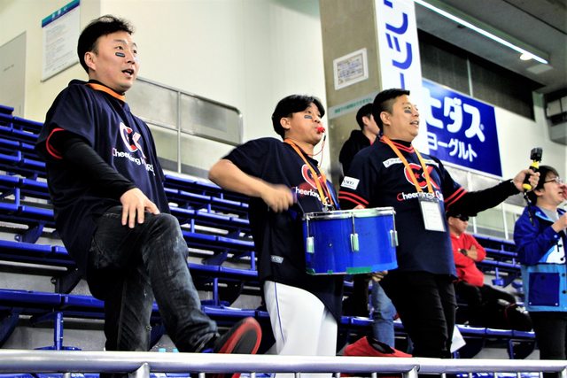 到熱烈的應援行列。每當一壘開始唱起應援歌時,外野便會呼喊“安打”和“全壘打”等