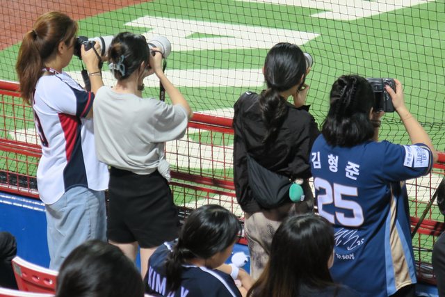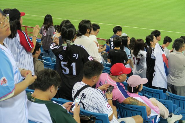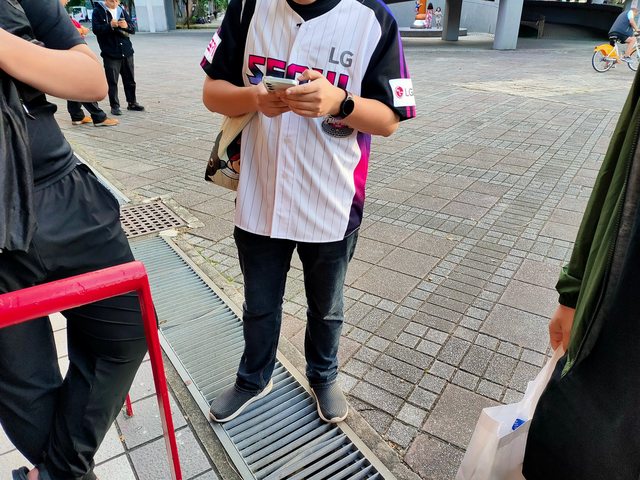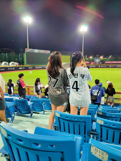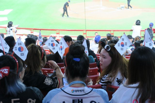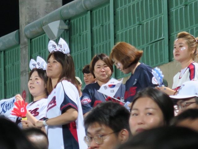 (6) 這兩位穿著韓國職棒球衣的韓國女球迷的背影。 不過,還有更有趣的事:我遇到不少台灣女生混進韓國加油區,並穿著韓國球衣、但卻說 中文,就像是「偽韓國隊球迷」!