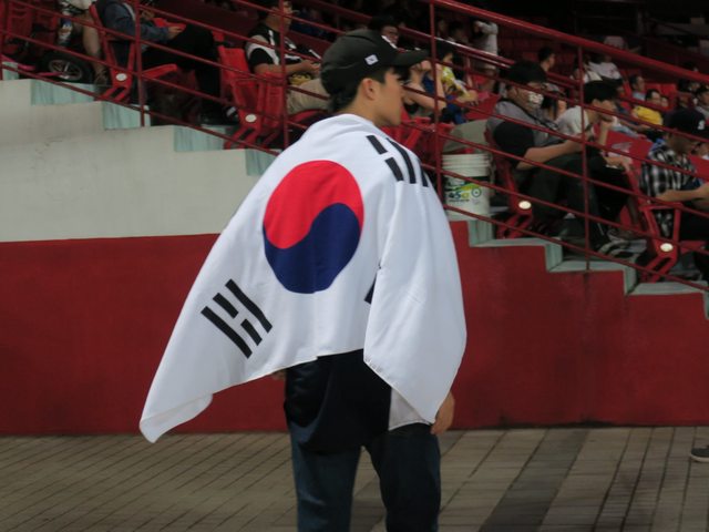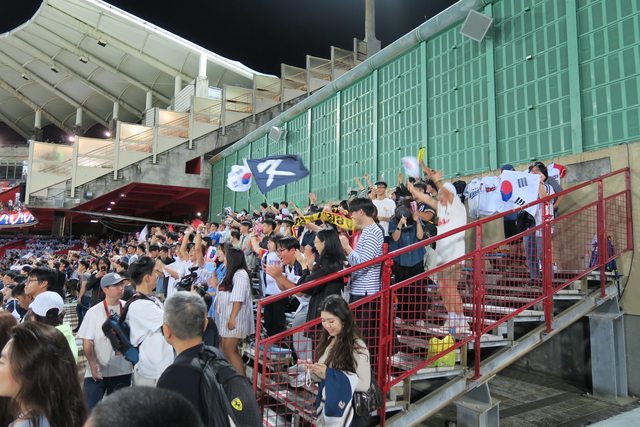 (15) 場邊的韓國球迷們,每當韓國隊進攻時,幾乎全員站立,場內場外都充滿熱情!
