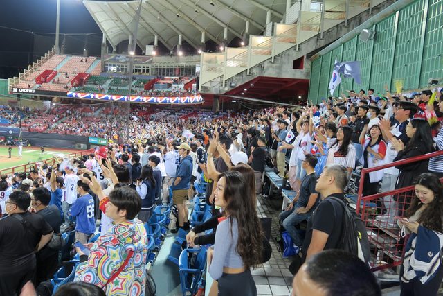 (17) 當多明尼加強力投手下場後,韓國隊開始追分,並成功超前!球迷們興奮到跳起來!