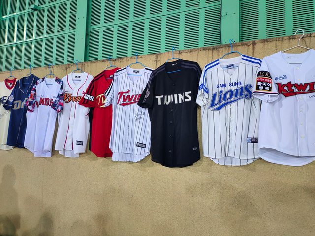 (5) 韓國球迷把韓國職棒隊的球衣掛滿了場邊的牆。這不只是支持,更是榮耀與驕傲的展現!