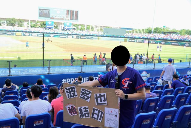當年台灣大賽,Lamigo結印大哥很有名,所以我做了一個波多也(怕)結印的看板XD