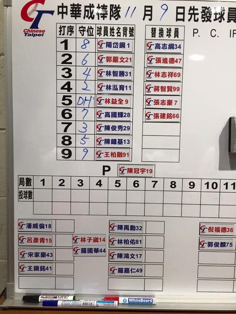 接下來本場沒先發的陽岱鋼上來代打蔣智賢,陽也打了1B,柏融大王補上2B,