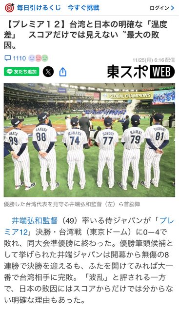 事不過;臺灣不僅是選手有必勝的決心,全國上下社會氛圍更是如此,反觀日本將12強定