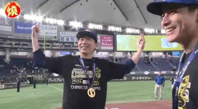 昨天統一成員合照前 大餅雙手擺出 手勢