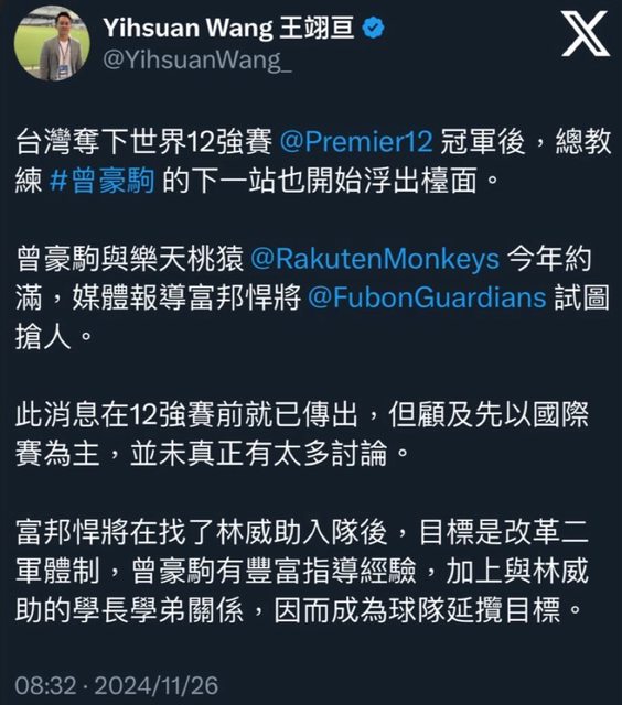 推 CCY2000: 最強打教對決富邦打線 11/26 09:02