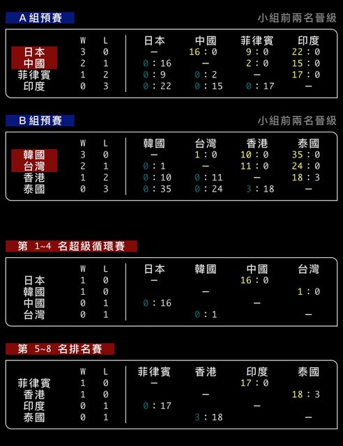 標題[分享] U12亞洲少棒 小組賽戰績 / 複賽賽程