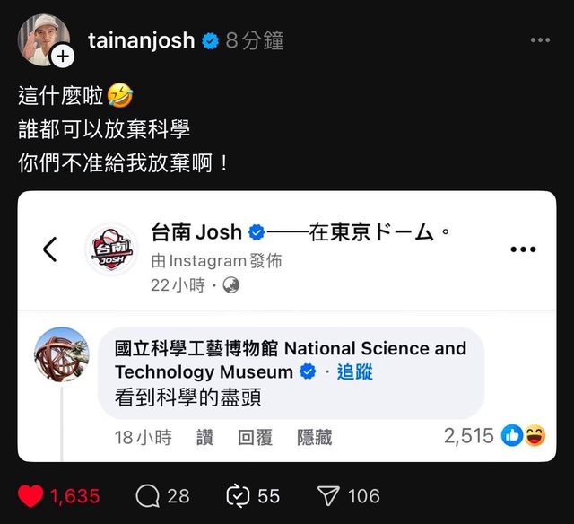 推 carlchang092: 那不如這樣,把Josh當作博物館館藏就可以算是科學了 11/27 12:40