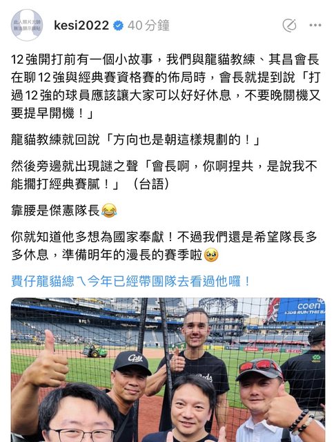 這篇又講到經典賽要換一批選手,團隊又跟費仔合照,是不是有望可以看到費仔來當槍手?