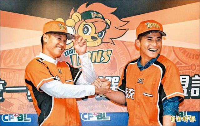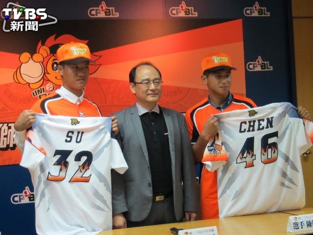 統一7-ELEVEn獅11日舉辦蘇智傑、陳傑憲加盟記者會,陳傑憲以簽約金440萬元、激勵獎金6