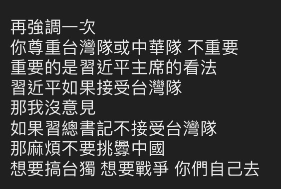→ wang19980531: 我就都叫台灣隊 我們就是中華隊 12/01 14:11