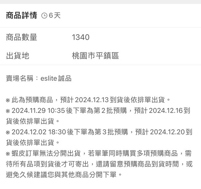 如題,剛剛在蝦皮訂到了,不過第三波竟然要等到12/20…