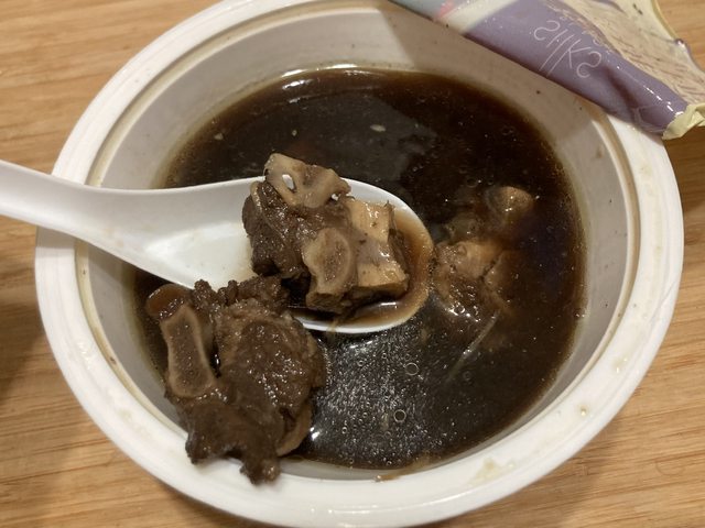 是在吮排骨,碗底的渣渣有點多,湯的表面有浮一層油,可以接受的人再買囉!