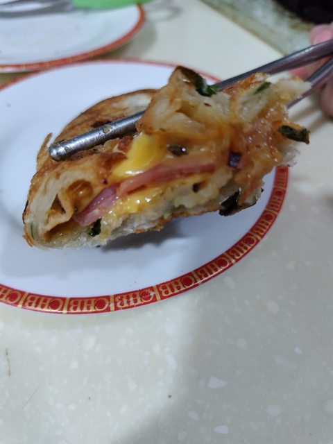 推 rywen: 我喜歡起司蔥抓餅!沒火腿版的,很好吃 10/23 19:09