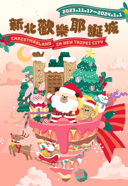 指出,2023新北耶誕城時間落在11/17起至2024/1/1,亮點包含:全台最大天幕耶誕樹、史