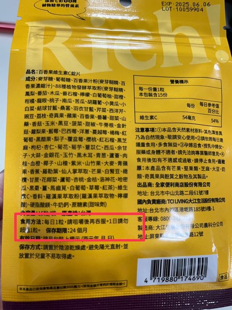 標題[商品] 全家 大人の生活 百香果維生素C錠片